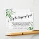 Si vous avez une douche d'affichage sans cadeau pour une future mariée, cette carte simple et polyvalente pourrait être le choix pour vous. En utilisant une police de script manuscrite moderne, j'ai d'abord ajouté un graphique d'en-tête qui dit "Sauter le papier d'enveloppement !" sur le devant, et "À" et "De" pour le côté de l'étiquette cadeau. Les coins sont agrémentés d'une simple aquarelle verte. Un champ de modèle a été mis en place pour donner des instructions aux clients qui n'enveloppent pas leur cadeau. N'hésitez pas à modifier le libellé si nécessaire. La police sans-serif utilisée pour les instructions peut être modifiée à votre gré. // 105 //