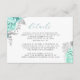Carte D'accompagnement Elégant Floral Aqua Silver Script Détails Mariage