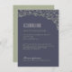Design floral orné à la main sur arrière - plan marine foncé, sophistiqué et élégant, parfait pour mariage de jardin extérieur, pays, mariage rustique; ou un mariage vintage, hiver ou été. Couleurs naturelles, vert sauge, bleu foncé et beige clair. Carte d'hébergement de mariage personnalisée pour votre commodité. Voir toutes les pièces correspondantes dans cette collection de fleurs rustiques du jardin ci-dessous.