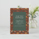 This elegant wedding enclosure card features a symmetrical layout with a central dark green panel surrounded by an intricate floral border. The design showcases a rich color palette of deep reds, maroons, and accents of orange, pink, cream, and blue-green, creating a vintage-inspired aesthetic. Stylized flowers like peonies and roses, along with small bird illustrations, frame the text beautifully, which is presented in a clean serif font for readability. Perfect for adding a touch of sophistication to your wedding suite, this card conveys a formal and refined mood, ideal for special occasions.