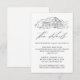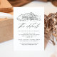 Carte de détails rustique mariage avec une illustration en croquis noir d'une grange affichée en haut avec un arrière - plan blanc. Les cartes de détails du mariage de la grange comportent d'élégants éléments de calligraphie noire tout au long de la conception. Personnalisez les cartes de détails de grange en noir et blanc avec des informations importantes telles que l'hébergement à l'hôtel, les codes de groupe pour les tarifs réduits, les informations de transport, l'itinéraire, les informations de réception de bienvenue et votre site Web mariage. Conçu pour coordonner avec notre collection Elegant Rustic Barn mariage.