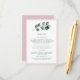 Design mariage élégant et simple. Fleurs de magnolia aquarelle, nuances de rose poussiéreux de la lumière aux feuilles d'eucalyptus vert profond, bouquet botanique simple. Combinaison de polices élégante. Bordure rose poussiéreux (rose poussiéreux), côté mauve poussiéreux à l'arrière. Lettres vertes. Idéal pour un mariage de printemps, mariage à fleurs, mariage moderne et élégant.