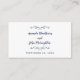 Notre élégante carte d'information de mariage bleu et blanc présente un design délicat parfait pour votre journée spéciale. Dotée d'un thème bleu moderne et tendance, cette carte comprend un code QR reliant votre site Web mariage. Personnalisez cette carte romantique avec les détails de votre site web dans un script sophistiqué bleu marine, orné de fleurs décoratives et d'un coeur unique. L'avant de la carte reflète le lettrage bleu chic, affichant les noms du couple engagé avec deux fleurs décoratives, chacune contenant un coeur unique. Cette partie présente également votre date de mariage future. Différentes configurations de texte sont disponibles dans cette conception de suite d'invitations. Pour toute question ou demande personnalisée, veuillez utiliser le bouton "MESSAGE" au bas de cette liste ou contacter invitationsuites@gmail.com.