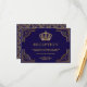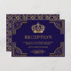 Elégante carte de réception avec une élégante bordure dorée et une belle couronne contre un arrière - plan bleu foncé.