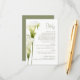 Enclosure Card Details for Weddings features a refined, minimalist style. Delicate calla lilies in soft green shades are depicted against a light background, creating an atmosphere of sophistication and tranquility. The design is modern, airy, and perfect for a stylish, romantic wedding.