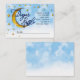 La carte de tombola de douche pour bébé contient un arrière - plan d'aquarelle bleu nuageux rêveur rempli d'étoiles brillantes de parties scintillant or et d'une lune d'ombre de parties scintillant or. Cette carte demande aux invités d'apporter un paquet de couches pour une chance de gagner un prix.