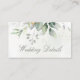 Magnifique mariage détails cartes de boîtier avec l'aquarelle eucalyptus et feuilles or.