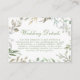 Ajoutez une touche de nature à vos invitations de mariage avec cette carte de détails de mariage aux feuilles aquarelles rustiques. Présentant un beau design avec des feuilles vertes délicates et des accents d'aquarelle douce, cette carte est parfaite pour partager des informations essentielles comme les directions, les hébergements et les détails de RSVP avec vos invités. L'écriture élégante et le thème naturel en font un ajout charmant à votre suite de papeterie de mariage. Personnalisez avec vos détails spécifiques pour vous assurer que vos invités sont bien informés et impressionnés par votre planification réfléchie. Idéal pour les mariages rustiques, boisés ou botaniques.