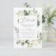 Des cartes d'information élégantes et blanches pour les mariages à fleurs avec des détails mariages encadrés de gardenias peintes en blanc, le souffle du bébé, des feuilles de fougères vertes sauge et des feuilles verts vibrants. Personnalisez les cartes de carénage mariage botanique en ajoutant des détails mariages clés tels que les chambres d'hôtel, les informations de bienvenue à la réception, le site Web du mariage, et plus encore. Conçu pour coordonner avec notre collection de mariages Lush White Flowers et Greenery.