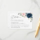 Complétez votre papeterie mariage avec cette carte de détails élégante. Le design présente des fleurs d'eau rose marine et rousse et de la verdure sur l'arrière - plan blanc.