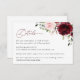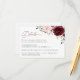 Complétez votre papeterie mariage avec cette carte de détails élégante. Le design présente des fleurs d'aquarelle bordeaux et rose vif et de la verdure sur l'arrière - plan blanc.