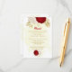 Carte D'accompagnement fleurs rouges et blanches foncées or mariage botan
