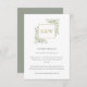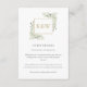 Doté d'une délicate aquarelle feuillage feuille, cette carte de détails botaniques chic pour invités peut être personnalisée avec vos initiales monogrammes et informations sur les invités. L'envers a un arrière - plan vert sage au verso. Conçu par Thisisnotme©