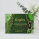 Make a bold and elegant statement with this green and gold agate marble wedding reception card. Featuring rich jewel-toned emerald hues, organic stone textures, and shimmering gold accents, this design beautifully complements a luxurious wedding celebration. Perfect for formal, modern, or glamorous events, the dramatic contrast of green and metallic gold sets the tone for an evening of cocktails, dinner, and dancing. Fully customizable with your reception details, this agate-inspired reception enclosure adds a refined and cohesive touch to your wedding stationery suite, ideal for fall or winter weddings.