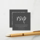 Vous cherchez la carte de réponse idéale pour votre mariage ? Ne cherchez plus ! Notre carte de réponse de mariage moderne et compacte personnalisable présente une typographie élégante en écriture blanche qui impressionnera à coup sûr vos invités. Avec un fond gris foncé chic, vous pouvez facilement inclure votre propre texte personnalisé pour le rendre vraiment unique. Au verso, créez un tout nouveau code QR qui renvoie directement à votre site web de mariage pour un accès facile et pratique. Allez à l'option "personnaliser", ajoutez l'URL de votre site web de mariage dans la zone prévue, et un code QR sera généré sur le design rien que pour vous. Commandez maintenant et laissez les réponses arriver !