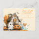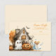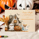 Fêtez l'arrivée à venir avec cette invitation de baby shower neutre et confortable pour Halloween ! Doté d'un charmant cottage hanté, de personnages fantômes sympathiques et d'un feuillage d'automne dans des tons chauds de beige et d'orange, il est parfait pour une célébration d'automne subtile et sucrée.
