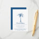 Offrez à vos invités tous vos hébergements mariages ou autres détails pertinents avec cette élégante carte d'enceinte avec script moderne et texte bleu incluant un palmier artistique. Un arrière - plan bleu coordonné est placé au dos de la carte. Idéal pour une plage ou un espace mariage extérieur. Si vous avez besoin d'aide ou d'une commande personnalisée, veuillez me contacter.