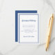 Simple et élégante carte de détail d'informations de mariage dispose d'un design minimaliste avec une bordure double cadre en bleu classique tendance sur un arrière - plan blanc immaculé. Le libellé traditionnel apporte une sophistication intemporelle et moderne. Personnalisez le design mariage avec vos détails en lettrage et script bleu classique tendance. Le dos de la carte est assorti en bleu classique solide.