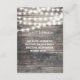 Informations pour les invités de mariage avec encart de mariage en bois rustique et des guirlandes lumineuses. Ajoutez toutes les informations nécessaires pour vos invités sur ce fond en bois gris vintage décoré avec une guirlande lumineuse. Invitation de mariage parfaite pour un mariage avec un thème de lumières nocturnes, un thème de grange, un thème de jardin, un mariage en plein air avec des lumières scintillantes.