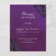 Dentelle florale noire comme design et réception de mariage violet profond ou carte d'information supplémentaire pour compléter notre invitation avec couleur violet audacieuse et police de style manuscrit, texte en argent.