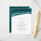 De magnifiques cartes encartées à l'aquarelle sarcelle pour les directions ou les hébergements, faisant partie de notre collection de papeterie de mariage à l'aquarelle moderne teintée, avec des nuances de sarcelle bleu-vert profond, rappelant les profondeurs de la mer, appliquées en coups de pinceau picturaux de lavis à l'aquarelle riche, assortis d'un texte classique simple.