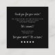 Carte D'accompagnement Instructions pour la bijouterie Merci noir blanc
