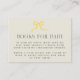 Mignon rencontre élégant avec cette douce suite de fête de naissance. Ajoutez des détails supplémentaires avec des cartes de renvoi. Demandez un type de cadeau spécial avec ces cartes Livres pour bébé présentant un ruban jaune dessiné à la main noué dans un nœud, associé à une typographie chic et élégante.