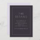This elegant wedding enclosure card features a sophisticated and minimalist design, perfect for conveying essential details with grace. The clean typography and simple layout create an air of understated elegance, while the dark color palette adds a touch of formality and refinement. Ideal for couples seeking a modern yet timeless look, this card ensures your guests have all the information they need in a stylish format that complements any wedding theme.