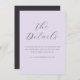 This elegant wedding enclosure card features a soft lavender background with an understated yet sophisticated design. The text is presented in a flowing, cursive script that adds a touch of romance and refinement to the overall look. The minimalist style focuses on simplicity and grace, making it perfect for couples who prefer a classic and timeless aesthetic for their special day. Ideal for sharing important details about accommodations and additional information, this card complements any traditional or modern wedding theme while maintaining a cohesive and polished appearance.