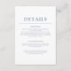 Complétez votre suite mariage avec l'élégance sobre de notre Simple Dusty Blue Mariage Enclôture Card. Doté d'un texte bleu poussiéreux et d'un design épuré et minimaliste, cette carte est parfaite pour partager avec vos invités les détails essentiels tels que l'hébergement, les itinéraires ou les informations d'itinéraire.