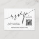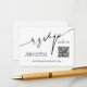 Ces cartes modernes en noir et blanc de boîtier mariage sont un moyen facile pour vos invités à RSVP sur votre site mariage. Inclure votre propre code QR et votre site Web mariage au recto et des informations supplémentaires au verso (supprimer notre texte pour laisser le verso vide). La couleur des cartes peut être changée avec nos outils d'édition. Le service de design en direct peut vous aider à organiser votre design ou vos couleurs si nécessaire.