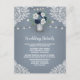 Présentent un fond bleu ardoise/acier ou bleu poussiéreux avec de la dentelle imprimée blanche, des guirlandes lumineuses et un pot Mason rempli d'éléments floraux, de verdure et plus encore.