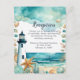 Belle carte de réception mariage avec un phare noir et blanc nautique, étoiles de mer et coquillages. Parfait pour un mariage. Les mots peuvent être changés en fonction de vos propres détails ou exigences