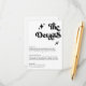 Cette "Retro Black and White Super Bold Script Mariage Encape Card" dispose d'un arrière - plan blanc propre avec du texte noir gras, offrant un design chic et intemporel. Le script super apporte une touche de charme rétro tout en conservant une atmosphère moderne et élégante. Parfait pour partager avec vos invités les détails mariages essentiels tels que l'hébergement, les itinéraires ou les notes spéciales.