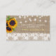 Mini carte simple RSVP insert / boîtier rustique avec un petit bouquet de tournesols, une bordure en dentelle blanche et des cordes de lumières scintillantes sur un arrière - plan beige imitation burlap. ++++++++++++++++++ Personnalisez-le avec votre texte de réponse et votre site web !