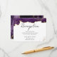 Cartes de réception de mariage variées en pierre d'agate pailletée or et violet. Confettis en feuille d'or faux et coups de pinceau. Police de caractères script avec police de nom serif facile à lire. Facile à ajuster pour vos propres besoins de mariage. Réalisé pour correspondre aux invitations de mariage variées en pierre d'agate pailletée or et bleu.