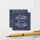 Fleur blanche triplée, chic et classique sur une carte de mariage arrière - plan bleu foncé.