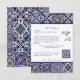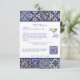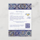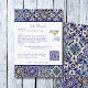Charmante carrelage méditerranéen sur cette carte d'enceinte Détails pour un mariage italien moderne. Faites savoir à votre invité que vous avez un site Web mariage avec plus d'informations et les faire scanner le code QR pour répondre à la RSVP. Thème : la Dolce Vita, carrelage bleu, italien, cocktail de citron, méditerranéen, mariage de destination - Europe du Sud.