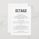 Carte d'enceinte mariage simple, design moderne et élégant avec vos détails. Les polices et les couleurs arrière - plans peuvent être changées en n'importe quelle couleur. Un design chic et design qui conviendra à un couple minimaliste. Utilisez ces cartes d'enclos pour indiquer l'itinéraire et tout autre détail important que vos invités pourraient avoir besoin de connaître, comme l'hébergement à l'hôtel, le stationnement, les informations sur la navette, etc.