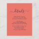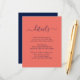 Offrez à vos invités les détails importants avec cette élégante carte d'accompagnement de mariage moderne bleu nuit et corail avec une police de caractères moderne. Articles assortis disponibles.