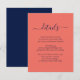 Carte D'accompagnement Mariage Moderne Bleu Nuit et Corail