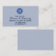 Cartes de réception de mariage modernes et élégantes avec un mandala découpé en papier bleu et blanc sur fond bleu-gris avec texte bleu foncé.