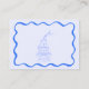 Carte mariage RSVP à la main branchée avec une bordure ondulée rétro et une tour de champagne illustrée à la main.