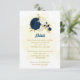 Fleurs bleu marine romantique & blanc avec mariage botanique feuille doré détails carte d'enceinte. Les détails de la parties scintillant sont simulés.