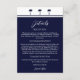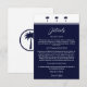 Ajoutez une touche d'élégance balnéaire à votre célébration avec cette carte de détails Mariage côtier personnalisée, avec un design graphique chic de trois palmiers bleu marine et des détails de rayures bleues classiques, dressés contre un arrière - plan blanc et bleu élégant. L'arrière présente un palmier bleu marine enfermé dans un cercle de marine sur un fond blanc propre, parfait pour un palmier mariage par la mer. Cette carte de mariage de plage élégante comprend de l'espace pour toutes vos informations mariages importantes telles que l'hébergement des mariages, le transport et les détails de direction, magnifiquement présenté dans la typographie élégante et les polices de script de calligraphie. Un match parfait pour n'importe quel thème tropical ou côtier mariage.