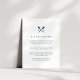 Conçue pour coordonner avec notre collection de mariages nautiques maritimes, cette carte d'information côtière chic propose des lettres bleu marine accentuées d'une paire de sonneries croisées en haut, flanquées de vos initiales, monogrammes ou duogrammes. Remplacez l'exemple de texte par les détails clés de votre célébration mariage. Vous vous demandez quelles informations inclure sur un encart faire-part de mariage ? Prenez en compte des détails comme l'hébergement à l'hôtel, les codes de groupe, le transport, l'itinéraire, les informations sur la réception de bienvenue et votre URL du site Web mariage. Vous pouvez même télécharger une carte vers l'envers à l'aide de la fonction personnaliser it. Vous avez besoin d'aide pour le libellé ou la mise en forme? J'adorerais aider ! Contactez Kristen via le lien "contacter ce designer".