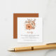 Enclosure de réponse de mariage aux fleurs d'automne élégantes de 2,5" carrés. Ajoutez votre code QR à votre page de réponse sur votre site web de mariage au dos en remplaçant le code QR sur l'exemple. Vous pouvez créer des codes QR gratuitement en ligne. Il suffit de rechercher "créateur de code QR" et de nombreuses options apparaissent pour créer gratuitement. Ce design présente de belles fleurs automnales brunes et crème et un feuillage bordant le côté droit et une typographie minuscule élégante.