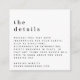 Carte D'accompagnement MINI Simple noir blanc Détails du Mariage