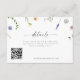 Ce mariage détails carte de boîtier avec code QR et fleurs sauvages délicats est l'ajout parfait à votre journée spéciale. La carte présente un design exquis de petits fleurs sauvages délicats qui ajouteront une touche d'élégance à votre mariage. La police de script moderne utilisée pour le texte est à la fois élégante et facile à lire, et ajoute à l'esthétique globale de la carte. Avec l'inclusion d'un code QR, vous pouvez diriger votre invité vers votre site Web mariage ou une autre plate-forme numérique et leur fournir facilement tous les détails importants de votre mariage, tels que l'emplacement, le transport ou l'hébergement.