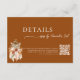 This modern wedding details card features a rich terracotta background (#944509), complemented by delicate boho botanicals and refined typography. Include a scannable QR code to give guests instant access to your wedding website, schedule, registry, and more. This card is perfect as an insert in your wedding invitation suite — functional, elegant, and fully customizable. Mix and match with other terracotta floral stationery pieces for a cohesive, on-trend look. Ideal for rustic, boho, autumn, or minimalist weddings.